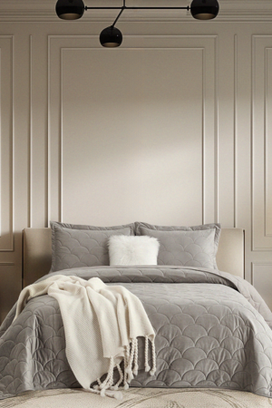 Покрывала Трегарон - это стиль вне времени. Спокойные цвета, объемная стежка, безукоризненный пошив, приятные тактильные ощущения. Покрывало изготовлено из мягкого велюра и натурального вискозного полотна. Оно удобно в использовании и уходе, экологично и безопасно даже для аллергиков.