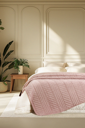 В этом покрывале нет ничего лишнего. Стильный лаконичный дизайн, объемная стежка. Бархатистый велюр и нежная, приятная к телу вискоза.