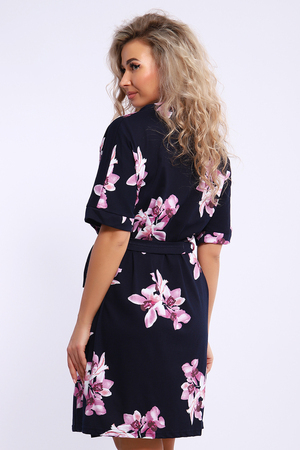 Халат запашной с поясом. Рукава цельнокроеные с манжетами. Карманы в боковых швах.