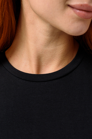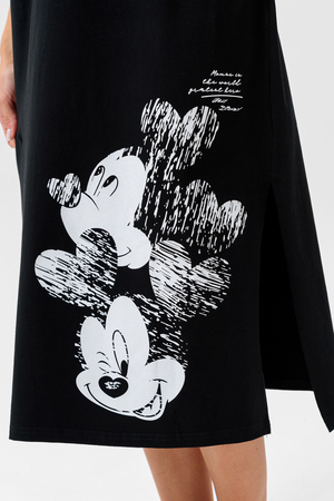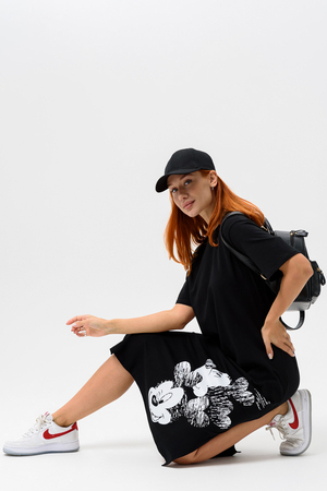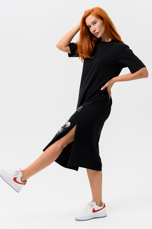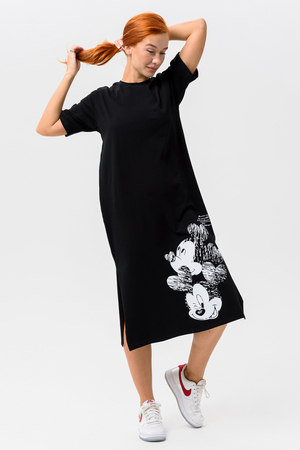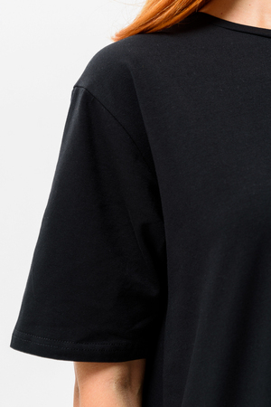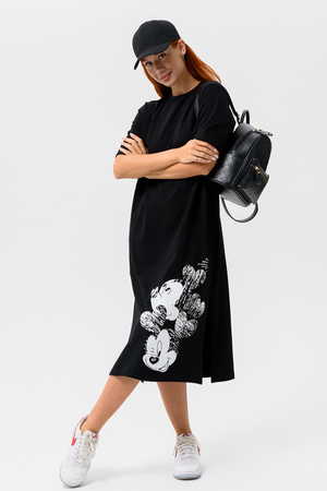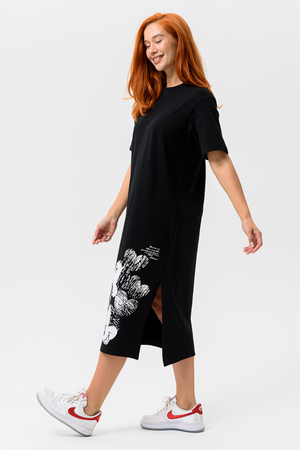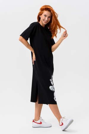 Платье полуприлегающего силуэта, с округлой горловиной, длинное. Рукав короткий. Горловина обработана бейкой из основного полотна.