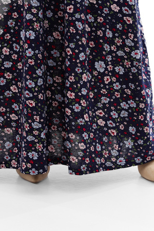 Платье выполнено в стиле бохо, что придаёт ему особый шарм и женственность. Элементы этого стиля делают его универсальным: вы можете сочетать его с различными аксессуарами, создавая уникальные образы для разных случаев. Длинные рукава и свободный силуэт делают его подходящим как для домашнего использования, так и для выхода на улицу.