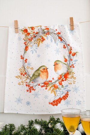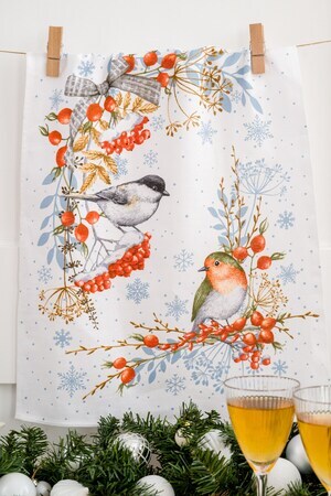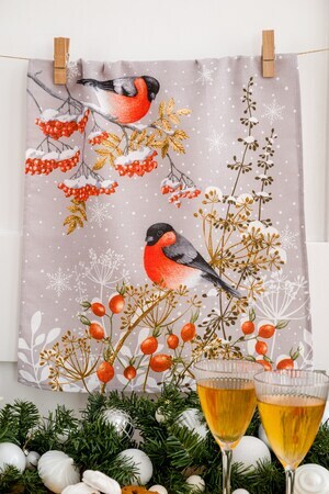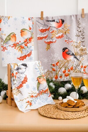 Принт с пузатыми снегирями делает эти полотенца не только функциональными, но и стильными аксессуарами для вашего дома. Они станут отличным сувениром или подарком к Новому году для ваших близких и друзей.