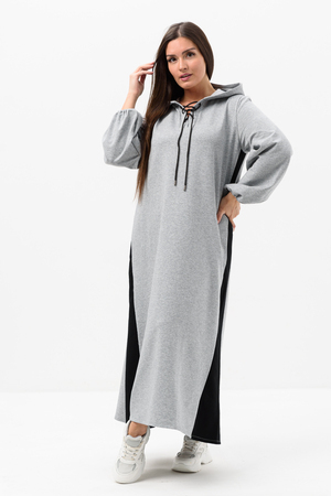 Стильное и женственное платье, которое станет идеальным выбором для вашего гардероба. Изделие достаточно длинное, выполнено из легкой, но плотной и приятной на ощупь ткани - футер, свободного покроя. Благодаря своему универсальному дизайну, оно будет хорошо сочетаться с различными аксессуарами и обувью, позволяя создать множество разных образов.