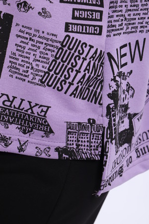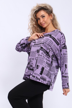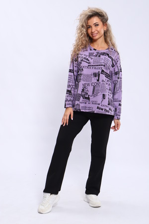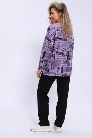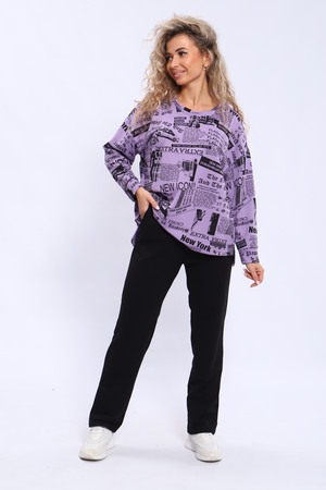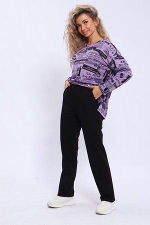 Костюм с брюками и кофтой. Кофта свободного кроя, с разрезами в боковых швах. Спинка удлиненная. Брюки прямого кроя с карманами.