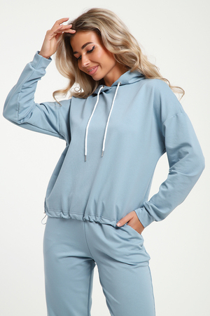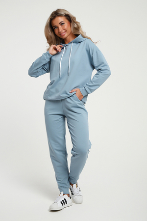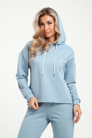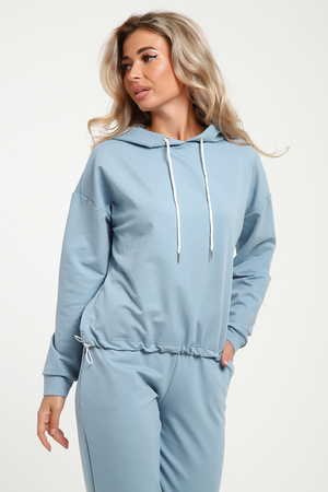 Женский костюм выполнен из футера  высокого качества с хлопком и небольшим добавлением полиэстера и лайкры, что позволяет изделию не скатываться и оставлять идеальный внешний вид на долгое время. Костюм состоит из толстовки и брюк. Толстовка с капюшоном и шнурком. Линия плеча спущена, длинный рукав. По низу толстовки имеется резинка с фиксатором, с помощью которой Вы можете собрать изделие как вам хочется и нравится. Брюки представлены с вместительными боковыми карманами. Манжеты брюк выполнены из основного материала, а пояс на специализированной поясной машине, что делает швы ровными и качественными. Свободный крой прекрасно будет смотреться на дамах с любыми формами. Костюм такого плана представлен в широкой размерной сетке, что позволяет выбрать его как девушке, так и женщине. Однотонный костюм модных расцветок будет удачным выбором для поездок в отпуск, на пикник, для школы, для активного отдыха и прогулок по городу. Будет гармонично сочетаться как с кроссовками, так и с ботинками. Используя эту модель в качестве домашнего костюма, Вы поймёте, что это именно тот самый идеальный вариант, в котором  будете себя чувствовать удобно, комфортно и современно. Костюм с брюками - это настоящая находка для тех, кто ценит свою индивидуальность!