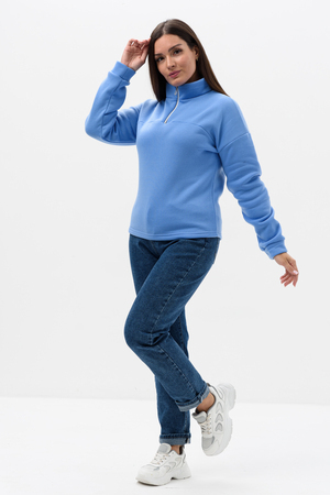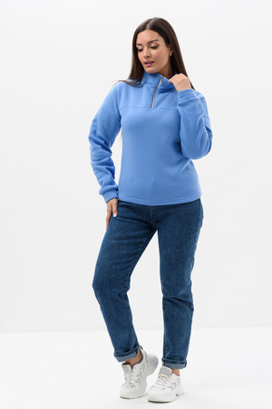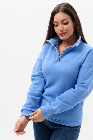 Женская толстовка из футера 2-х нитки. Длинный рукав на манжете обеспечивает тепло, прилегающий низ защищает от ветра. Особое внимание привлекает горло на молнии, которое не только добавляет функциональности, но и становится стильным акцентом в общем образе. Легко сочетается с различными элементами гардероба, создавая множество интересных образов. Толстовка - это практичный элемент вашего гардероба, который поможет вам чувствовать себя уверенно и комфортно в любое время года.