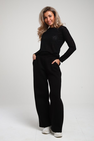 Брюки палаццо с высокой посадкой 392BLK