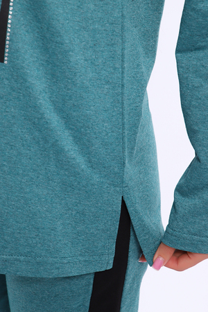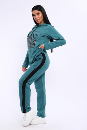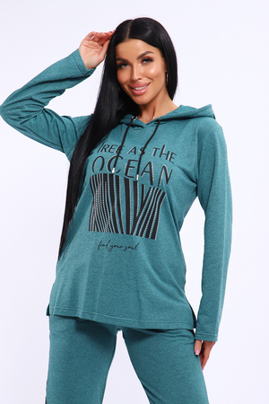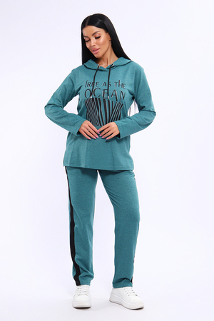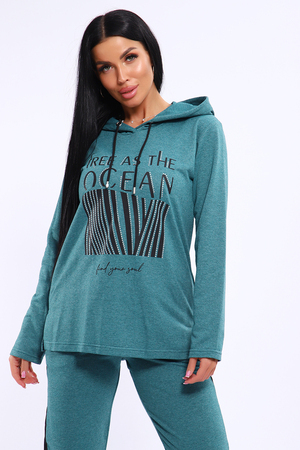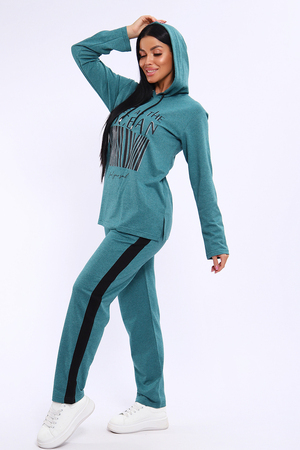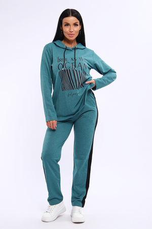 Мягкий и уютный женский костюм для дома, изготовленный из высококачественного, приятного телу трикотажного полотна, состоящего на 50% из хлопка. Комплект представлен в трех расцветках. На полочке кофты имеется принт, придающий изделию особый шарм. Дополнительным декором кофты служит капюшон. По бокам брюк расположены лампасы из ткани контрастного цвета. Костюм красиво сидит на фигуре, подчеркивает ее достоинства и при этом не стесняет движений. В нем Вы будете чувствовать себя комфортно и уверенно.