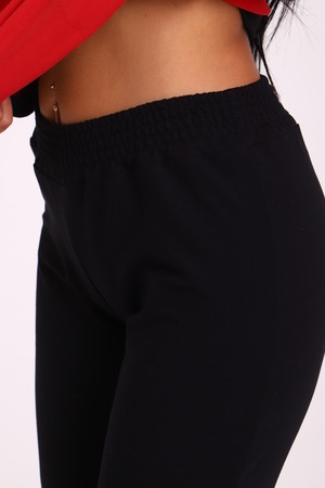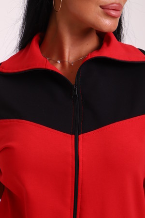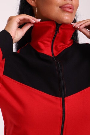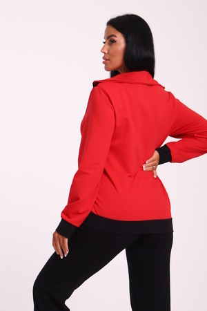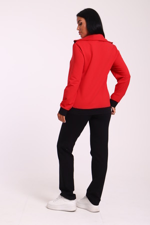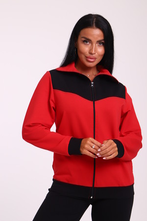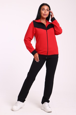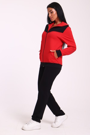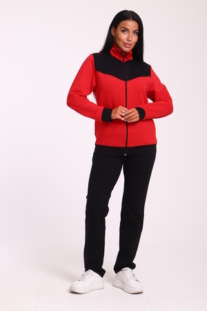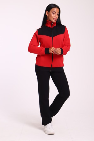 Спортивный женский костюм из эластичного футера. Кофта прямого силуэта на молнии с воротником - стойка, рукав втачной, по бокам карманы, на поясе манжет. Брюки классического кроя без карманов на притачном поясе.