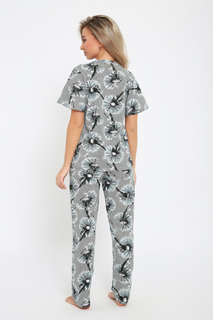 Домашний костюм состоит из футболки и брюк. Брюки с карманами. Футболка с короткими рукавами - крылышками. Комфортен для повседневной носки.