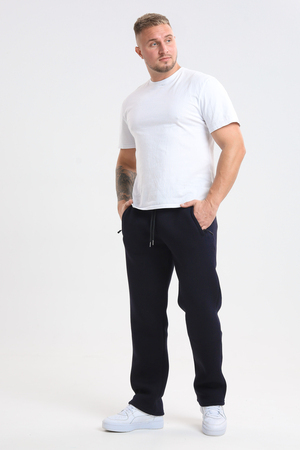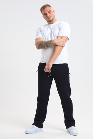Базовые спортивные брюки с начесом прямого кроя, с двумя карманами на молнии, пояс на резинке со шнурком, сзади декоративный шов. Штаны изготовлены из высококачественной ткани, не скатываются, не вытягиваются и отлично держат форму. Подойдут для повседневной прогулки, для спорта на открытом воздухе.