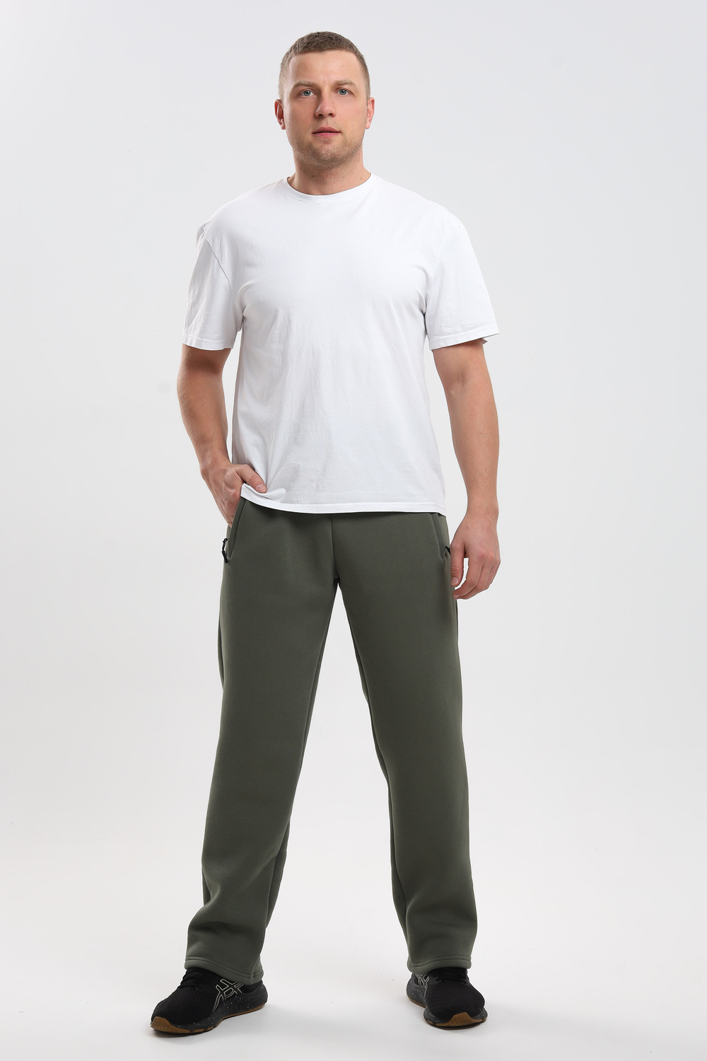 Базовые спортивные брюки с начесом прямого кроя, с двумя карманами на молнии, пояс на резинке со шнурком, сзади декоративный шов. Штаны изготовлены из высококачественной ткани, не скатываются, не вытягиваются и отлично держат форму. Подойдут для повседневной прогулки, для спорта на открытом воздухе.