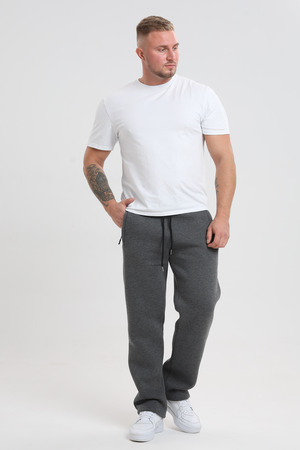 Базовые спортивные брюки с начесом прямого кроя, с двумя карманами на молнии, пояс на резинке со шнурком, сзади декоративный шов. Штаны изготовлены из высококачественной ткани, не скатываются, не вытягиваются и отлично держат форму. Подойдут для повседневной прогулки, для спорта на открытом воздухе.