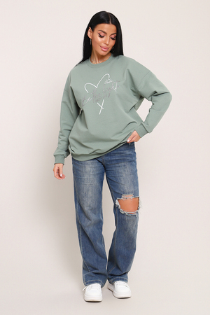 Толстовка с карманами из мягкого футера свободного кроя со спущенной линией плеча. Принт в виде сердечка. Горловина, манжеты и пояс из эластичного кашкорсе.