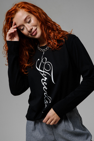 Лонгслив снова в моде и прочно обосновался в базовом гардеробе современного человека. Удобная трикотажная кофта представляет собой футболку с длинным рукавом, которую можно использовать как самостоятельный элемент, так и носить под пиджак, толстовку или рубашку. Лонгслив выполнен из высокоплотного хлопкового трикотажа и является невероятно комфортным и удобным. Футболка с длинными рукавами имеет прямой базовый крой и классическую линию плеча. Лонгслив - это неформальный стиль, когда на футболку можно надеть клетчатую рубашку и сочетать с кедами и джинсами. За счет натуральной ткани лонгслив можно носить в качестве домашней одежды или нательного белья, одежды для сна, тренировочной спортивной одежды и военной экипировки. Если вы хотите силуэт "оверсайз" нужно взять на размер или два больше, ориентируйтесь по таблице замеров. Расцветка черный+бриллиант принт "фольга" - очень яркий и блестящий.