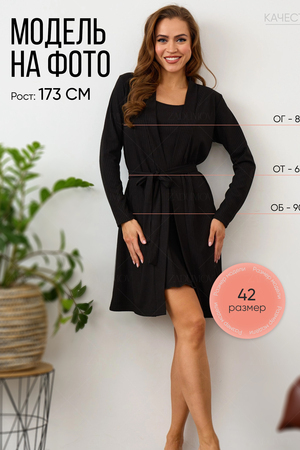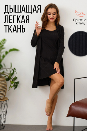 Модная двойка из сорочки на бретельках и халата с длинными рукавами - это стильный комплект для домашнего отдыха и комфортного сна. Трендовый набор незаменим для повседневной носки. Халат на запах на поясе и ночнушка из ткани лапша представлены в разных размерах и подходят для высоких и невысоких девушек и взрослых женщин. Изделия белого цвета из дышащей легкой, но плотной ткани, приятной к телу, имеют оптимальную длину. Вискозный материал обеспечивает приятное ощущение на коже и позволяет телу дышать во время сна. Мягкое и эластичное трикотажное полотно обеспечивает воздухопроницаемость и подходит для носки на отдыхе, в больнице или санатории. Незаменима такая женственная сорочка для создания романтичного сексуального образа. Эстетичное изделие не мнется, поставляется упакованным в удобный zip-пакет. Длина изделия выше колена очень комфортна, не перекручивается во время сна, не давит и не натирает. Красивая, домашняя одежда подходит для носки каждый день. Сорочка и халат, представленные и в больших размерах, изготовлены из материала в составе которого 25% вискозы, 70% полиэстера и 5% лайкры. Трендовый трикотажный комплект имеет модный силуэт и современный дизайн, подчеркивая женственность и элегантность. Молодежный короткий халатик и короткая нарядная сорочка на тонких лямках с глубоким вырезом подходит для носки осенью, а также в летние и весенние дни. Набор из двух шикарных вещей станет отличным выбором для пижамной вечеринки летом и весной, осенью и зимой. Популярная модель из ткани в рубчик идеально подойдет для отдыха на даче. Милая сорочка с декольте и стильный халатик станут отличным подарком маме на любой праздник.