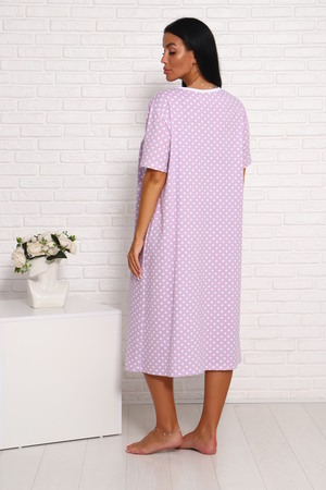 Женская ночная сорочка выполнена из трикотажного полотна кулирка. Сорочка свободного силуэта с коротким рукавом, горловина окантована.
