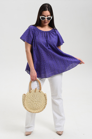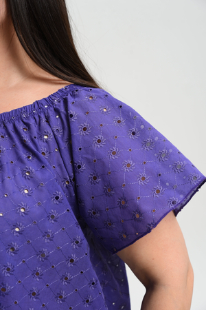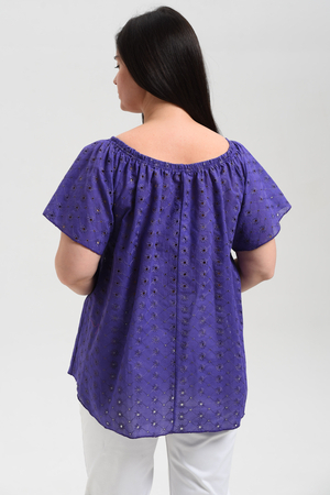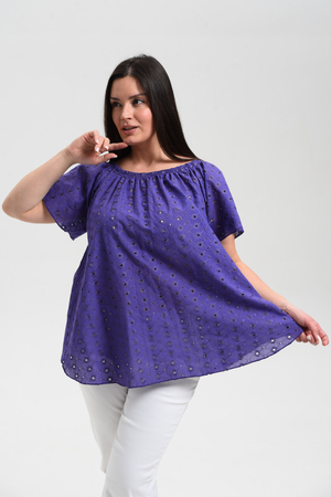Туника женская, силуэт трапеция. Рукав реглан, короткий. Горловина собрана на эластичную тесьму. Низ туники фигурный. В лекалах учтена незначительная усадка ткани после стирки.