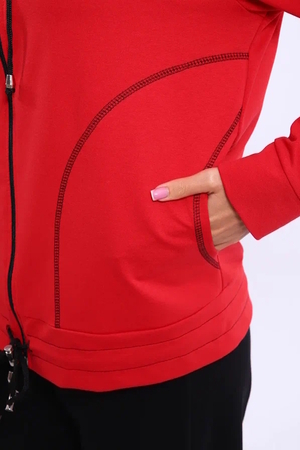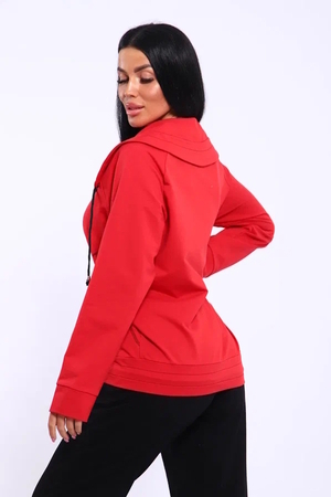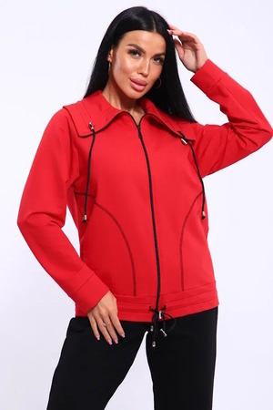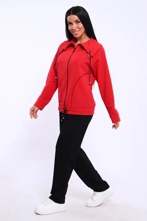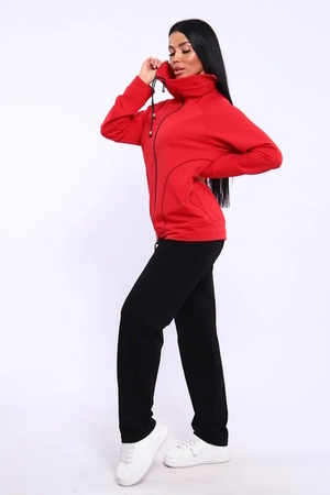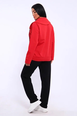 Спортивный женский костюм из эластичного футера. Брюки классического кроя без карманов на притачном поясе. Декоративный элемент в виде фиксаторов по дизайну не подбирается, может отличаться от представленного на фото.