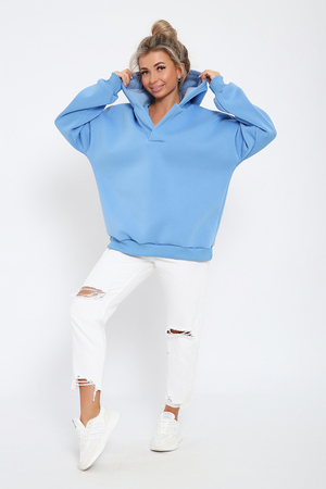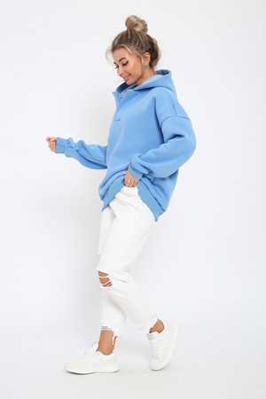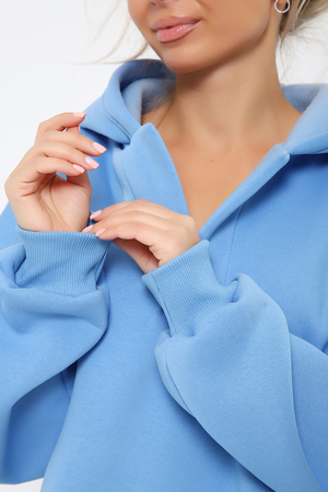 Толстовка свободного кроя с длинными рукавами на спущенном плече и капюшоном. Идеально подойдет для прогулок и активного отдыха.