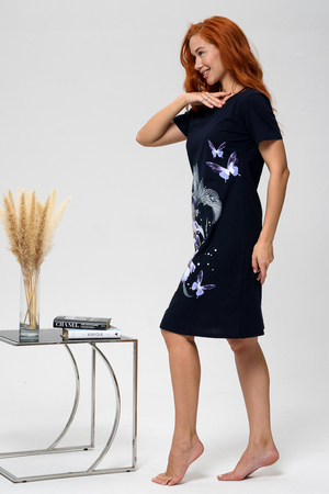Туника удлиненная женская из 100% хлопка.Модель туники домашней полуприлегающего силуэта.имеет короткий рукав,округлый вырез горловины.Такой фасон отлично смотриться на девушках с пышными формами.Платье-туника подчеркнет вашу женственность и привлекательность.В таком платье удобно отправиться и на прогулку,и на дачу,и за покупками,а можно взять его на море в качестве летней легкой одежды.