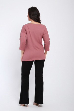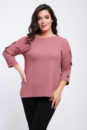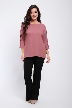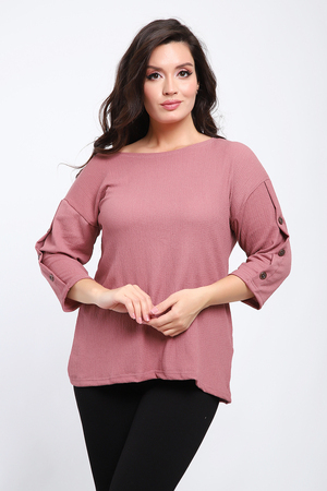 Футболка женская свободного прилегания с рукавами 3/4, украшенная пуговицами на рукавах.