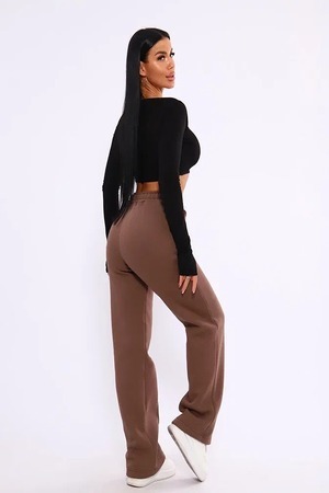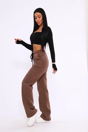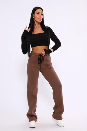 Предлагаем Вашему вниманию новую модель: женские брюки из трикотажа средней плотности с теплым начесом . Изделие из такого материала поддерживает оптимальную температуру и не сковывает движения, а за удобную посадку на талии отвечает притачной пояс с регулировочным декоративным шнуром. Модель декорирована отделочными строчками на передних половинках брюк. Для ключей, телефона и прочих мелочей предусмотрены боковые карманы. Такая модель брюк - незаменимая вещь в гардеробе и девушки и женщины. Добавление полиэстера к хлопковому волокну в состав трикотажа, придает ему особую эластичность и стойкость к воздействию ультрафиолета. Эти брюки идеально подходят для повседневного использования, для прогулок и отдыха на свежем воздухе, для путешествий. В наших брюках Вам будет максимально комфортно в холодное время года. Носите с удовольствием! Модель представлена широким размерным рядом с 46р по 60 р.