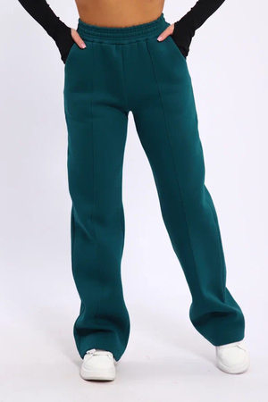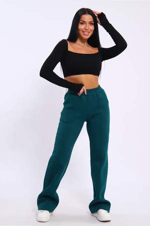 Предлагаем Вашему вниманию новую модель: женские брюки из трикотажа средней плотности с теплым начесом . Изделие из такого материала поддерживает оптимальную температуру и не сковывает движения, а за удобную посадку на талии отвечает притачной пояс с регулировочным декоративным шнуром. Модель декорирована отделочными строчками на передних половинках брюк. Для ключей, телефона и прочих мелочей предусмотрены боковые карманы. Такая модель брюк - незаменимая вещь в гардеробе и девушки и женщины. Добавление полиэстера к хлопковому волокну в состав трикотажа, придает ему особую эластичность и стойкость к воздействию ультрафиолета. Эти брюки идеально подходят для повседневного использования, для прогулок и отдыха на свежем воздухе, для путешествий. В наших брюках Вам будет максимально комфортно в  холодное время года. Носите с удовольствием! Модель представлена широким размерным рядом с 46р по 60 р.