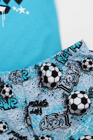 Пижама для мальчика, состоящая из футболки - однотонное полотно с нанесением печати и шорт - полотно с рисунком, выполнена из мягкой, приятной к телу трикотажной ткани средней плотности, 100% хлопок. Пижамка согревает, даже если ребенок ворочается и раскрывается во сне, а также создает ощущение уюта, ребенок спит глубже и реже просыпается. Также стильная пижама для подростков создает хорошее настроение. Можно носить как домашний костюм или использовать как летнюю пижаму, для дома или в садике. Пижамный костюм без карманов для полного комфорта во сне и застежек, свободного полуприлегающего силуэта, для комфортного сна ребенка. Пижамные шорты с удобной посадкой и нетугой резинкой. Яркий и модный молодежный пижамный стиль для детей и подростков, пижама для мальчика подростка.