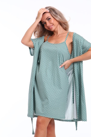 Представляем вам изысканный комплект из халата и сорочки, выполненный из 100% хлопка, который подарит вам комфорт и стиль в любое время дня. Халат на запах с поясом идеально сидит по фигуре и позволяет регулировать объем, создавая утонченный силуэт. Удобные боковые карманы добавляют практичности и делают халат идеальным вариантом для домашнего отдыха и утренних ритуалов. Сорочка на брительках легкая и воздушная, идеально дополняет образ, обеспечивая максимальный комфорт во время сна или отдыха. Этот комплект станет отличным выбором для тех, кто ценит качество и элегантность. Наслаждайтесь уютом и стилем в каждом моменте с нашим халатом и сорочкой.