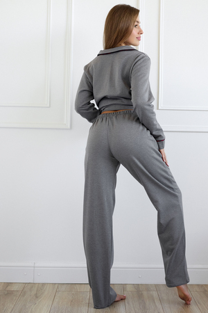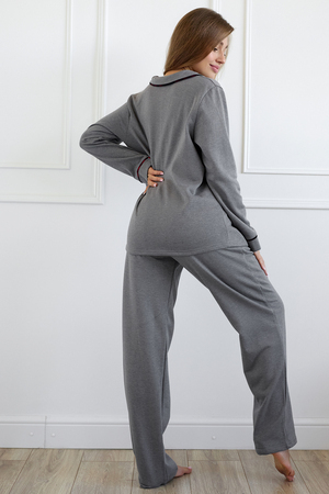 Пижама женская Ирина из высококачественного футера 2-х нитки с начёсом - прекрасно подойдет для повседневной носки дома и сна. Рубашка с отложным воротничком сделает Ваш образ еще более женственным. Красивая и удобная модель пижамы отлично подойдет в качестве подарка.