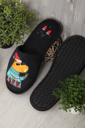 Мягкие домашние тапочки с закрытым носом и открытой пяткой – это идеальный аксессуар для создания уютной атмосферы в вашем доме! Верх и стелька изготовлены из теплых и приятных на ощупь материалов. Подошва изготовленная из высококачественного ПВХ, который еще называют EVA. Обеспечивает отличное сцепление с полом и защиту от скольжения. Это уникальный материал и при всей своей комфортабельности, долго способен выдерживать большие нагрузки Удобные и стильные, эти тапочки с рисунком станут незаменимым аксессуаром вашего домашнего гардероба как зимой, так и в летние дни! Все наши тапки прошиваются для большей износостойкости армированной нитью, а сублимационная печать позволяет наносить краску на волокна ткани, из-за чего цвета получаются насыщенными и сохраняют яркость даже после нескольких стирок. Дизайнерские принты  придадут уникальности и поднимут настроение вам и вашим гостям!