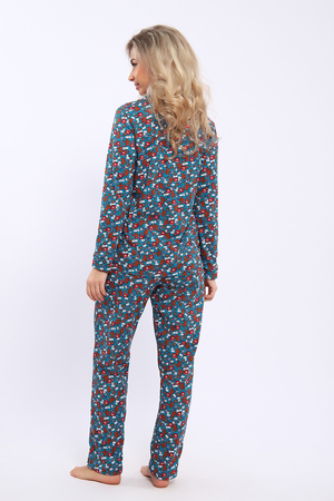 Пижама состоит из рубашки и брюк. Брюки с карманами. Рубашка на пуговицах с воротником и длинными рукавами на манжетах.