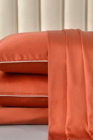 Для нашего фирменного постельного белья Elizabeth мы используем 100% тенсель (эвкалиптовое волокно) пряжи 60s, сатиновое плетение плотностью 300ТС. Комплект выполнен в однотонном дизайне с изящным белым кантом по краю пододеяльника и наволочек.