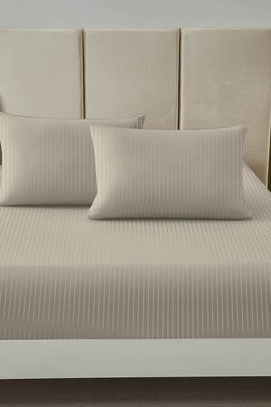 Ткань представляет собой сатин с жаккардовым плетением, в результате чего образуется однотонный рисунок в виде выразительных полос, изредка – в виде квадратов или прямоугольников. Страйп-сатин - от английского слова «stripes», в переводе обозначающее «полосы». Материал очень красивый, элитарный, глянцевые полосы здесь чередуются с матовыми, при этом изнаночная и лицевая стороны выглядят одинаково. Состав ткани страйп-сатина для постельного белья полностью натуральный – здесь присутствует только хлопковая нить высокого качества. Для пошива постельных принадлежностей используется полотно с плотностью расположения нитей 120-150 г/м², что обеспечивает хорошую мягкость и прочность белья. По завершению плетения выполняется мерсеризация полотна – обработка раствором каустической соды. Такая процедура увеличивает блеск поверхности, плотность и прочность ткани, служит защитой от выгорания.