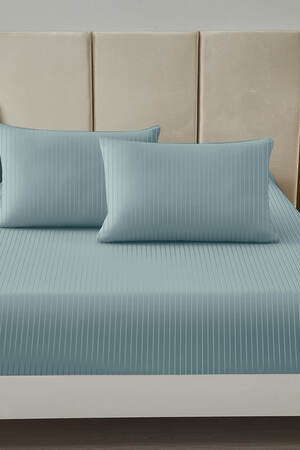 Ткань представляет собой сатин с жаккардовым плетением, в результате чего образуется однотонный рисунок в виде выразительных полос, изредка – в виде квадратов или прямоугольников. Страйп-сатин - от английского слова «stripes», в переводе обозначающее «полосы». Материал очень красивый, элитарный, глянцевые полосы здесь чередуются с матовыми, при этом изнаночная и лицевая стороны выглядят одинаково. Состав ткани страйп-сатина для постельного белья полностью натуральный – здесь присутствует только хлопковая нить высокого качества. Для пошива постельных принадлежностей используется полотно с плотностью расположения нитей 120-150 г/м², что обеспечивает хорошую мягкость и прочность белья. По завершению плетения выполняется мерсеризация полотна – обработка раствором каустической соды. Такая процедура увеличивает блеск поверхности, плотность и прочность ткани, служит защитой от выгорания.