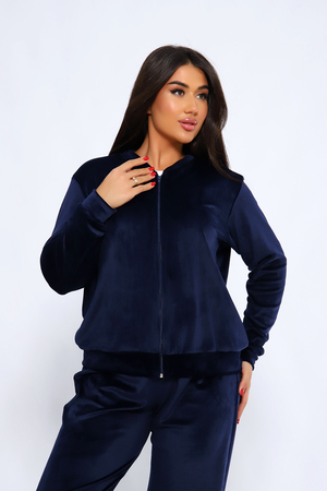 Костюм женский из мягкого велюра состоит из брюк и бомбера. Брюки имеют идеальную посадку, бомбер свободного кроя. Костюм идеально подойдет как для дома, так и для отдыха и прогулок.