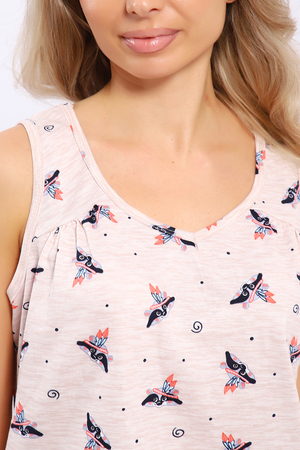 Пижама состоит из майки и шорт. Майка с V - образным вырезом горловины и сборкой над грудью. Комфортна для повседневной носки и сна.