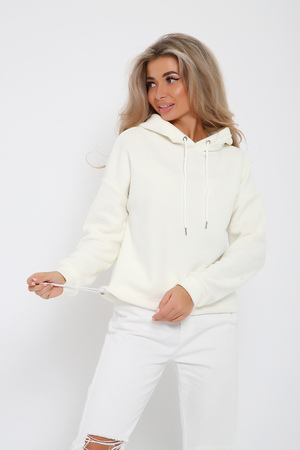 Женская толстовка выполнена из флиса  высокого качества. Флис - ткань с ворсистой поверхностью, что позволяет эффективно сохранять тепло. Материал прочный, эластичный, влагостойкий. Хорошо пропускает влагу, при этом не впитывает ее. По теплостойкости превосходит шерсть, но намного легче. Воздухопроницаемая гигроскопичная ткань создает для тела комфортный микроклимат. Материал гипоаллергенный, подходит для изготовления одежды детям, в том числе новорожденным. Изделия из флиса легкие, не мнутся, не деформируются, не вытягиваются. В такой одежде удобно и комфортно. Эластичность материала позволяет легко двигаться. Толстовка с капюшоном и шнурком. Линия плеча спущена, длинный рукав. По низу толстовки имеется резинка с фиксатором, с помощью которой Вы можете собрать изделие как вам хочется и нравится. Свободный крой прекрасно будет смотреться на дамах с любыми формами. Толстовка такого плана представлена в широкой размерной сетке, что позволяет выбрать её как девушке, так и женщине. Однотонная толстовка модных расцветок будет удачным выбором для поездок в отпуск, на пикник, для школы, для активного отдыха и прогулок по городу. Будет гармонично сочетаться с брюками, джинсами, кроссовками и ботинками. Используя эту модель в качестве домашней одежды Вы поймёте, что это именно тот самый идеальный вариант, в котором  будете себя чувствовать удобно, комфортно и современно. Толстовка - это настоящая находка для тех, кто ценит свою индивидуальность!