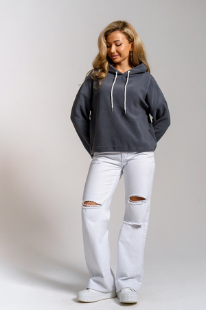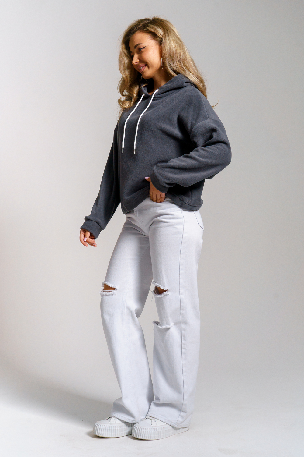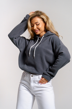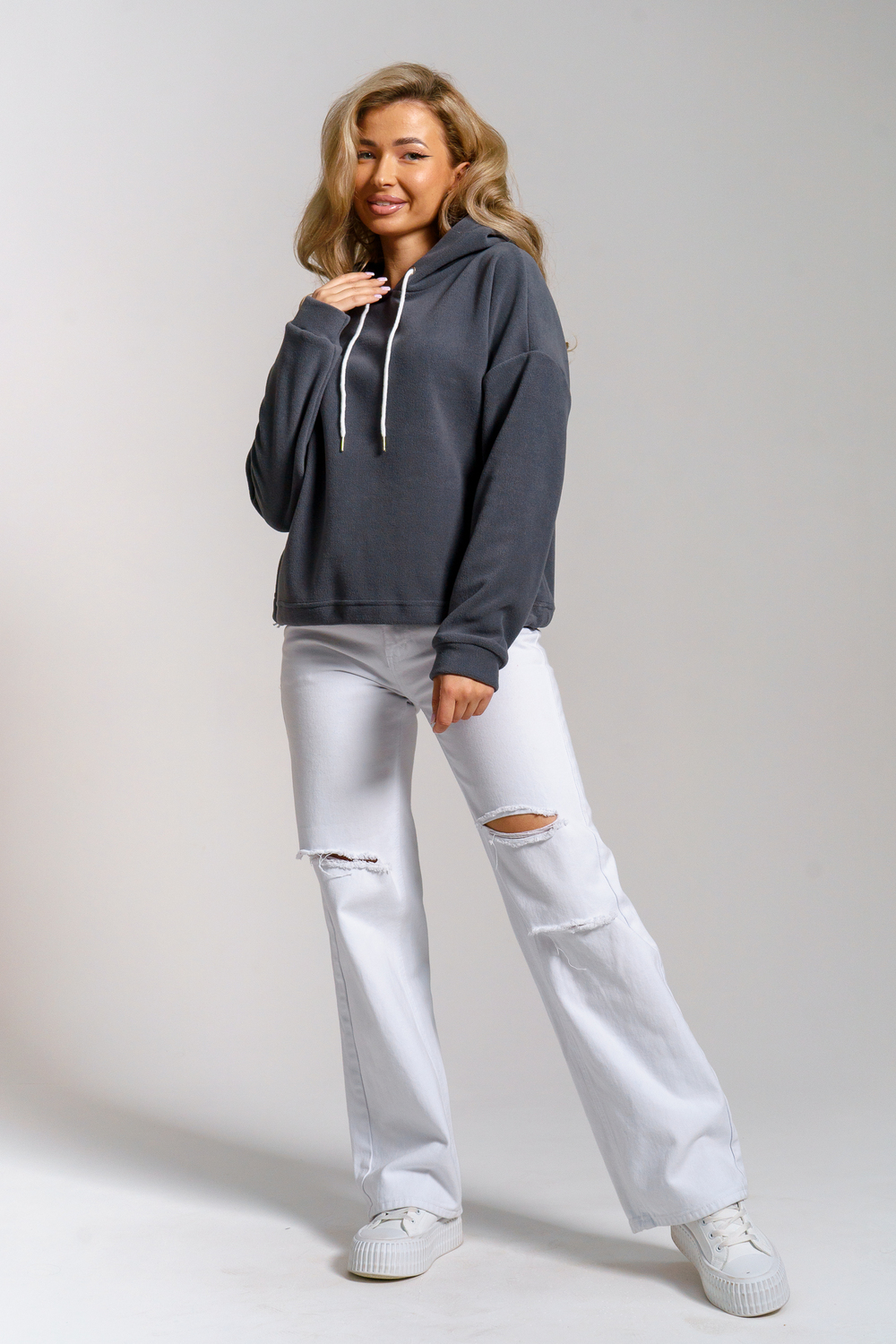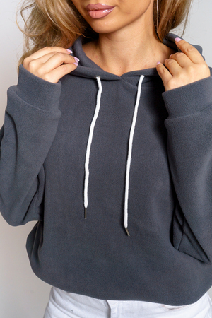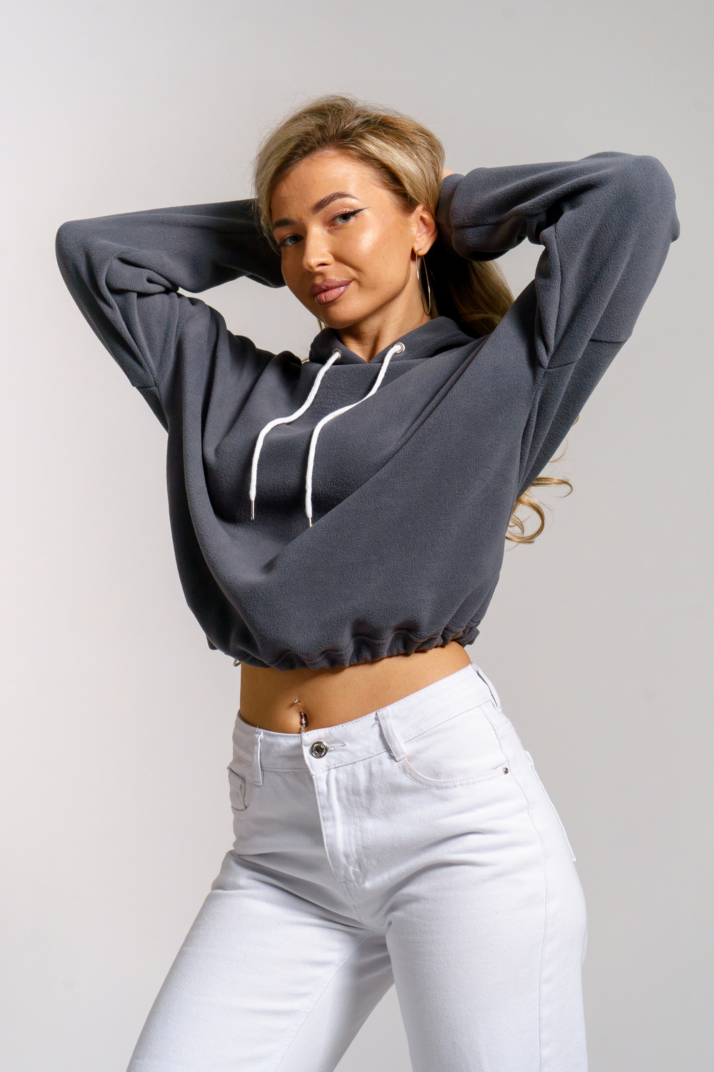Женская толстовка выполнена из флиса  высокого качества. Флис - ткань с ворсистой поверхностью, что позволяет эффективно сохранять тепло. Материал прочный, эластичный, влагостойкий. Хорошо пропускает влагу, при этом не впитывает ее. По теплостойкости превосходит шерсть, но намного легче. Воздухопроницаемая гигроскопичная ткань создает для тела комфортный микроклимат. Материал гипоаллергенный, подходит для изготовления одежды детям, в том числе новорожденным. Изделия из флиса легкие, не мнутся, не деформируются, не вытягиваются. В такой одежде удобно и комфортно. Эластичность материала позволяет легко двигаться. Толстовка с капюшоном и шнурком. Линия плеча спущена, длинный рукав. По низу толстовки имеется резинка с фиксатором, с помощью которой Вы можете собрать изделие как вам хочется и нравится. Свободный крой прекрасно будет смотреться на дамах с любыми формами. Толстовка такого плана представлена в широкой размерной сетке, что позволяет выбрать её как девушке, так и женщине. Однотонная толстовка модных расцветок будет удачным выбором для поездок в отпуск, на пикник, для школы, для активного отдыха и прогулок по городу. Будет гармонично сочетаться с брюками, джинсами, кроссовками и ботинками. Используя эту модель в качестве домашней одежды Вы поймёте, что это именно тот самый идеальный вариант, в котором  будете себя чувствовать удобно, комфортно и современно. Толстовка - это настоящая находка для тех, кто ценит свою индивидуальность!