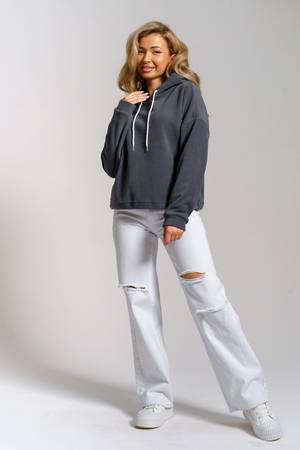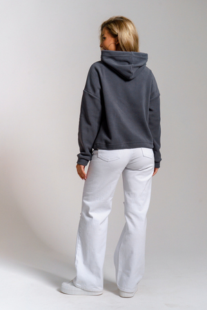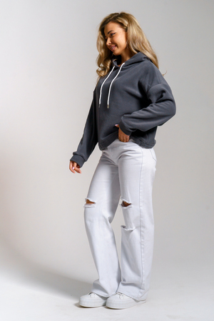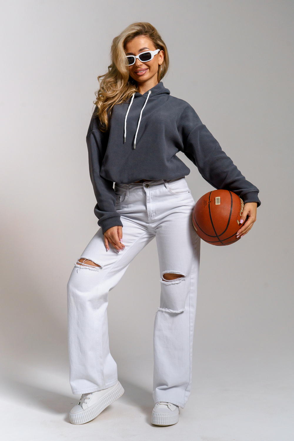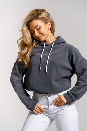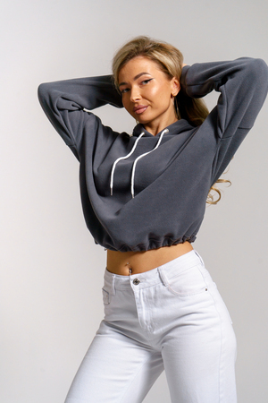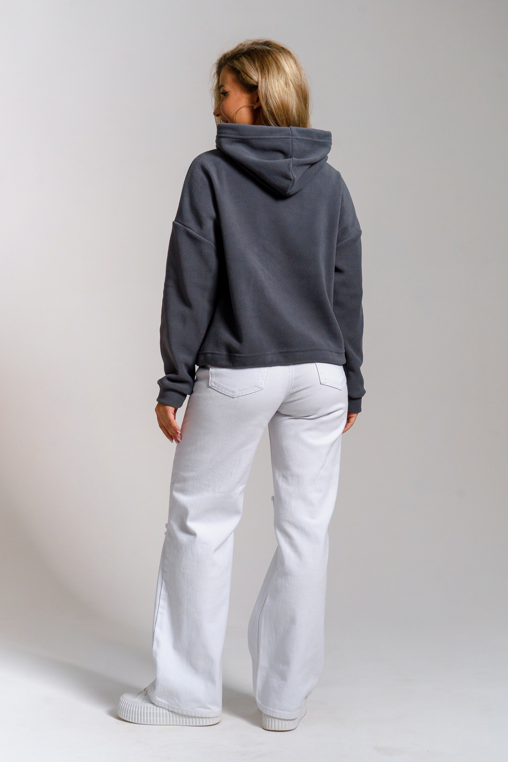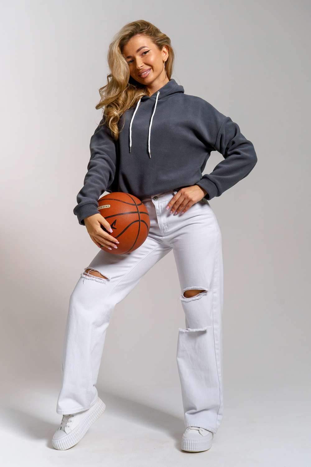 Женская толстовка выполнена из флиса  высокого качества. Флис - ткань с ворсистой поверхностью, что позволяет эффективно сохранять тепло. Материал прочный, эластичный, влагостойкий. Хорошо пропускает влагу, при этом не впитывает ее. По теплостойкости превосходит шерсть, но намного легче. Воздухопроницаемая гигроскопичная ткань создает для тела комфортный микроклимат. Материал гипоаллергенный, подходит для изготовления одежды детям, в том числе новорожденным. Изделия из флиса легкие, не мнутся, не деформируются, не вытягиваются. В такой одежде удобно и комфортно. Эластичность материала позволяет легко двигаться. Толстовка с капюшоном и шнурком. Линия плеча спущена, длинный рукав. По низу толстовки имеется резинка с фиксатором, с помощью которой Вы можете собрать изделие как вам хочется и нравится. Свободный крой прекрасно будет смотреться на дамах с любыми формами. Толстовка такого плана представлена в широкой размерной сетке, что позволяет выбрать её как девушке, так и женщине. Однотонная толстовка модных расцветок будет удачным выбором для поездок в отпуск, на пикник, для школы, для активного отдыха и прогулок по городу. Будет гармонично сочетаться с брюками, джинсами, кроссовками и ботинками. Используя эту модель в качестве домашней одежды Вы поймёте, что это именно тот самый идеальный вариант, в котором  будете себя чувствовать удобно, комфортно и современно. Толстовка - это настоящая находка для тех, кто ценит свою индивидуальность!