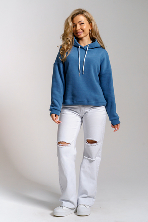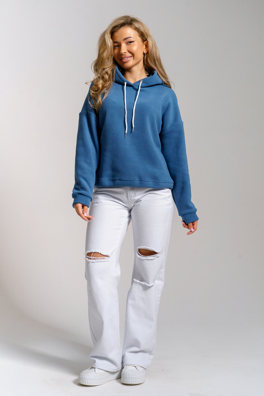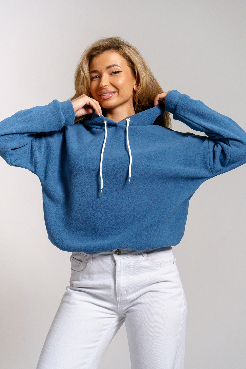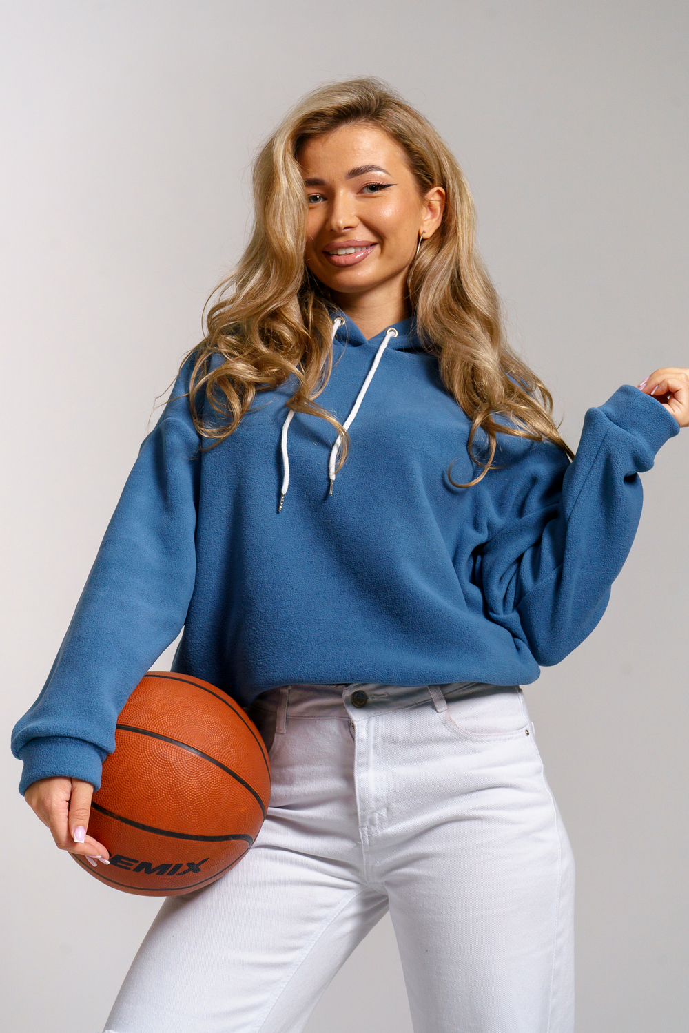 Женская толстовка выполнена из флиса высокого качества. Флис - ткань с ворсистой поверхностью, что позволяет эффективно сохранять тепло. Материал прочный, эластичный, влагостойкий. Хорошо пропускает влагу, при этом не впитывает ее. По теплостойкости превосходит шерсть, но намного легче. Воздухопроницаемая гигроскопичная ткань создает для тела комфортный микроклимат. Материал гипоаллергенный, подходит для изготовления одежды детям, в том числе новорожденным. Изделия из флиса легкие, не мнутся, не деформируются, не вытягиваются. В такой одежде удобно и комфортно. Эластичность материала позволяет легко двигаться. Толстовка с капюшоном и шнурком. Линия плеча спущена, длинный рукав. По низу толстовки имеется резинка с фиксатором, с помощью которой Вы можете собрать изделие как вам хочется и нравится. Свободный крой прекрасно будет смотреться на дамах с любыми формами. Толстовка такого плана представлена в широкой размерной сетке, что позволяет выбрать её как девушке, так и женщине. Однотонная толстовка модных расцветок будет удачным выбором для поездок в отпуск, на пикник, для школы, для активного отдыха и прогулок по городу. Будет гармонично сочетаться с брюками, джинсами, кроссовками и ботинками. Используя эту модель в качестве домашней одежды Вы поймёте, что это именно тот самый идеальный вариант, в котором будете себя чувствовать удобно, комфортно и современно. Толстовка - это настоящая находка для тех, кто ценит свою индивидуальность!