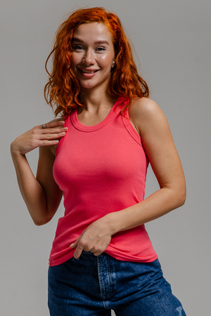 Трикотажная спортивная майка из мягкого хлопка, приталенная, идеально сочетается с джинсами, жакетами, шортами.