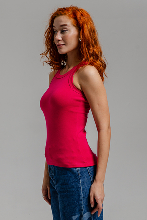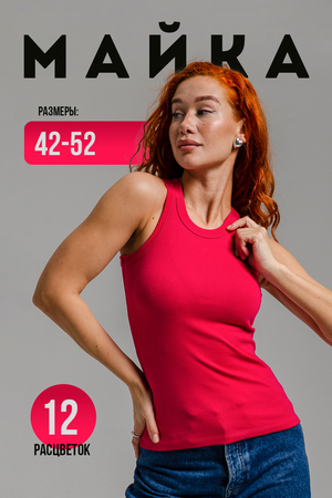 Трикотажная спортивная майка из мягкого хлопка, приталенная, идеально сочетается с джинсами, жакетами, шортами.
