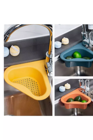 Дуршлаг на раковину для мытья овощей и фруктов - это вещь, полезная для жизни, упрощающая поддержание порядка на кухне. Дуршлаг в форме треугольной корзины (как лебедь) крепится на угол раковины. Выполнена из пищевого гипоаллергенного пластика высочайшего качества. Корзина универсальная устанавливается на раковину мойку, одновременно служит и сушилкой для посуды, и дуршлагом для фруктов и овощей, и подставкой для моющих средств, губки для мытья посуды и дозатора мыла. Органайзер для кухни выполнен в виде подвесной корзины с решеткой, отверстиями для оттока воды. У пластиковой сушилки удобные ручки, за которые ее удобно переносить. На ней удобно мыть фрукты и зелень, а также чистить овощи, не засоряя сток раковины.