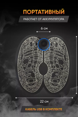 Умный электрический массажный микротоковый коврик для ног. Ваш личный массажист по цене 1 сеанса массажа! Снимет усталость, стресс, отеки, избавит от болей и судорог ваши ноги. Ноги - это именно та часть тела, которая каждый день включена в работу. Не важно, весь день вы на ногах или же наоборот, ведете сидячий образ жизни, в любом случае микротоковый массажёр для ног будет прекрасным завершением трудного рабочего дня! Коврик для стоп - это идеальный способ: избавиться от усталости; предотвратить боль; получить полное расслабление; привести в тонус мышцы; достичь эффекта лимфодренажа; простимулировать акупунктурные точки; восстановить подвижность суставов при артрозах и артритах; п предотвратить развитие плоскостопия; снять спазмы и напряжение со стоп; нормализовать сон и давление; предотвратить появление мозолей и натоптышей, а также облегчить боль при таких заболеваниях как шпора. Лимфодренажный эффект гарантированно избавит вас от отеков.