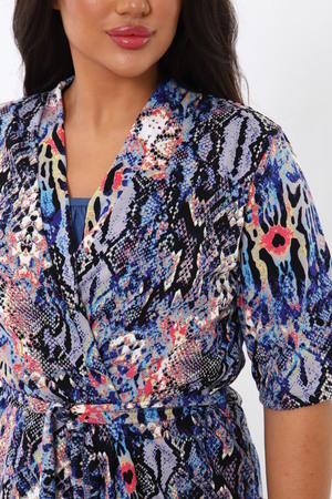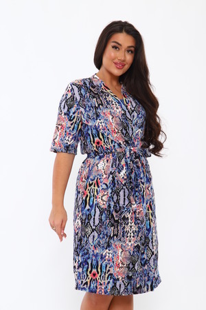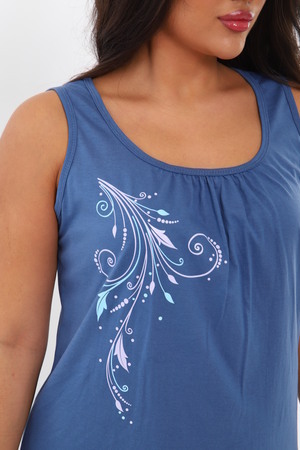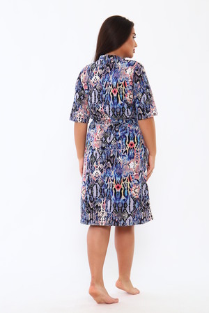 Пеньюар состоит из сорочки и халата. Халат запашной, рукав короткий, силуэт полуприлегающий. Сорочка со сборкой над линией груди.