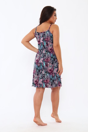 Сорочка на тонких бретелях с отрезным лифом.Силуэт прилегающий,длина чуть выше колена