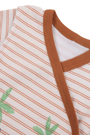 Боди-кимоно. Мягкий боди для новорожденных выполнен из премиального 100% хлопка. Материал полностью безопасный и подходит для частых стирок, активной носки. Ткань интерлок. Для более легкого одевания и снятия боди для малышей продуман на кнопках по всему изделию, полностью распашной. Удобная замена слипу, майке, рубашке. Принты нанесены водными красками, абсолютно безопасными для детей. Не стираются даже после многократных стирок. Все материалы детской одежды сертифицированы и безопасны для детей. Рекомендуем перед первым надеванием, одежду для новорожденных постирать вручную при температуре не выше 30 градусов С, и в дальнейшем стирать на деликатном режиме. Обращаем Ваше внимание, что изделия в размерах 56-62 выполнены швами наружу, чтобы не травмировать нежную кожу новорожденных.