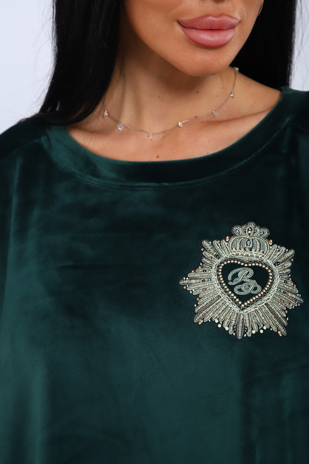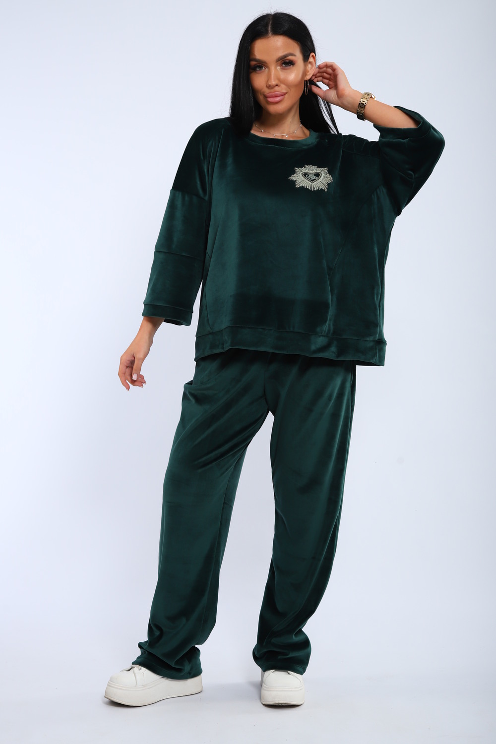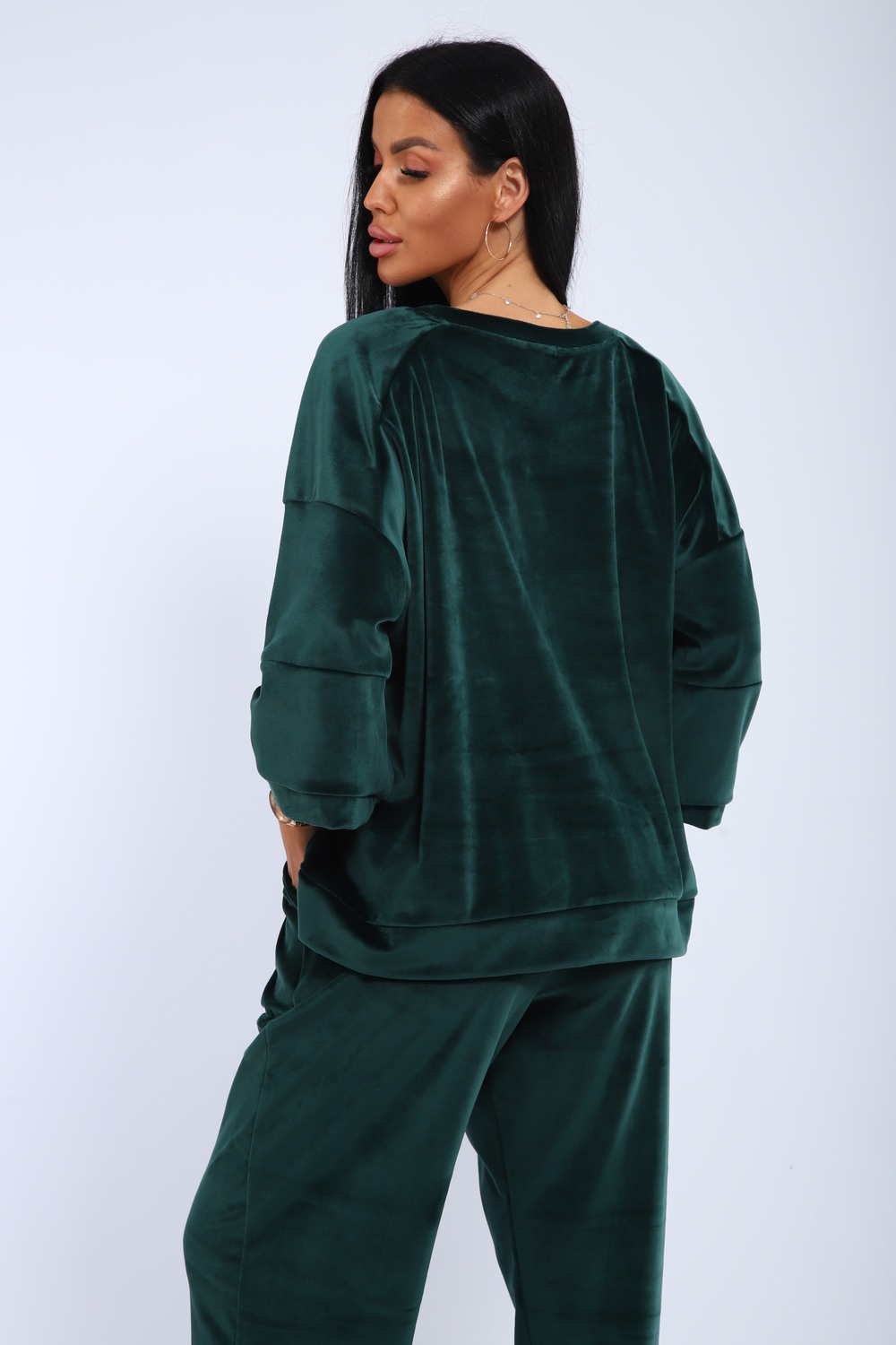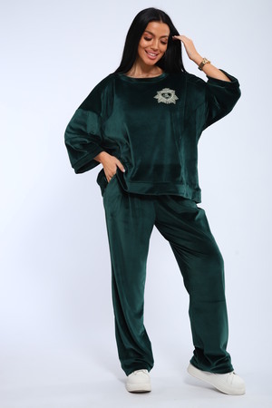 Костюм женский с широкими брюками и свободной кофтой с рукавами 3/4. Модель выполнена из премиального велюра.